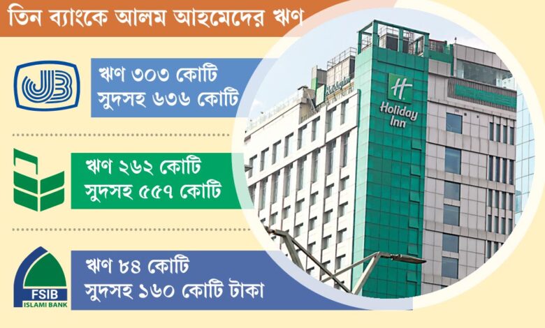 ব্যাংক কর্মকর্তাদের সঙ্গে কথা বলে জানা যায়, আলম আহমেদ জনতা ব্যাংক থেকে ২০১৬ সালের ৪ জানুয়ারি ৩০৩ কোটি টাকা ঋণ নেন। রাজধানীর তেজগাঁওয়ে ৩৩ কাঠা জমির ওপর নির্মিত ‘হলিডে ইন’ হোটেল ও জমি দেখিয়ে হাবিব হোটেল ইন্টারন্যাশনালের নামে ওই ঋণ নেন তিনি। এর পর থেকে গত আট বছরে একটি টাকাও পরিশোধ করেননি। বরং বছরের পর বছর ঋণ পুনঃ তফসিল করা হয়।