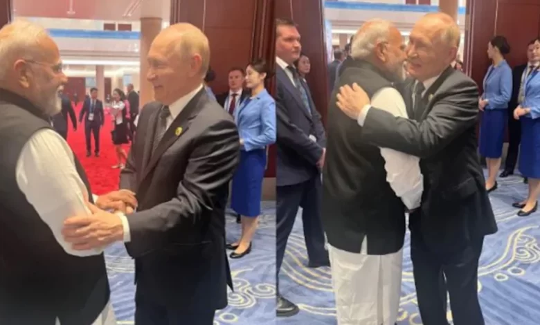 চীনে হাস্যোজ্জ্বল মোদি-পুতিন, করলেন কোলাকুলি