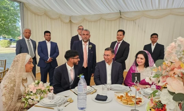 যুক্তরাজ্য বিএনপি নেতা ড. মুজিবের ছেলের বিয়েতে সস্ত্রীক তারেক রহমান