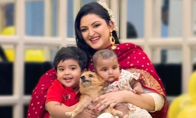 দুই সন্তান রাজ্য ও প্রিয়মের সঙ্গে চিত্রনায়িকা পরীমণি। ছবি: সংগৃহীত
