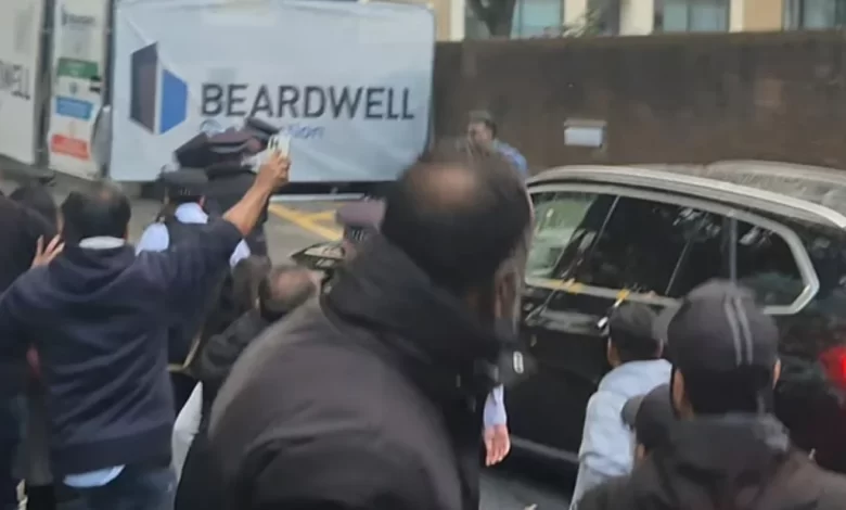 প্রত্যক্ষদর্শীরা জানান, বাংলাদেশ হাইকমিশনের একটি কালো রঙের বিএমডব্লিউ গাড়ি ক্যাম্পাস থেকে বের হওয়ার সময় আওয়ামী লীগের নেতা–কর্মীরা গাড়ির সামনে শুয়ে পড়ার চেষ্টা করেন এবং একপর্যায়ে ডিম নিক্ষেপ করেন।