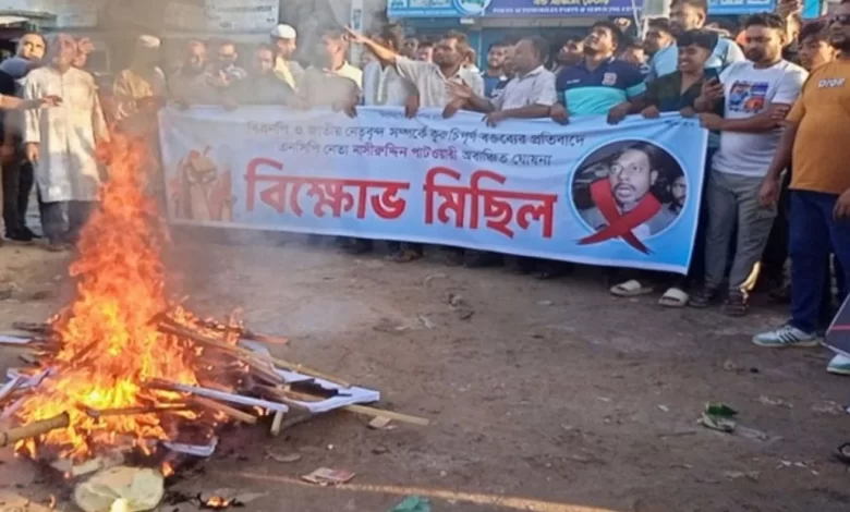 নাসীরুদ্দীন পাটওয়ারীকে নিজ জেলায় অবাঞ্ছিত ঘোষণা, কুশপুত্তলিকা দাহ