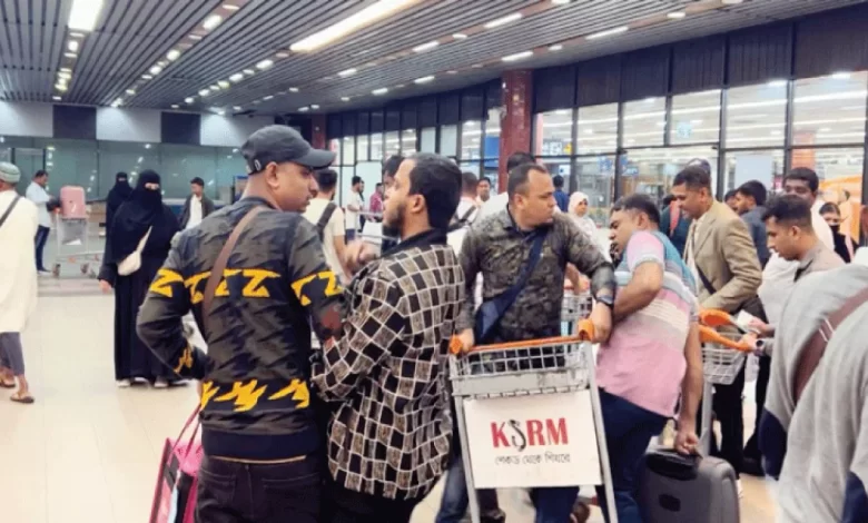 বিমানবন্দরের ৫ নম্বর লাগেজ বেল্টের সামনে শত শত যাত্রী লাইনে দাঁড়িয়ে ছিলেন ট্রলির আশায়। কিন্তু দেখা মিলছিল না কোনো ট্রলির। সকাল ৬টা ৯ মিনিটে ২০–২৫টি ট্রলি সরবরাহ করা হলে শুরু হয় টানাটানি, ধাক্কাধাক্কি ও চিৎকার-চেঁচামেচি। যাত্রীদের মধ্যে হাতাহাতির ঘটনাও ঘটে।