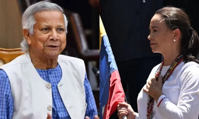 ২০০৬ সালে শান্তিতে নোবেলজয়ী অধ্যাপক ইউনূস আজ এক অভিনন্দন বার্তায় বলেন, ‘আমি মারিয়া করিনা মাচাদোকে আমার অন্তরের অন্তস্তল থেকে অভিনন্দন জানাই, যিনি তার প্রিয় ভেনেজুয়েলায় গণতন্ত্র রক্ষায় সাহসিকতার সঙ্গে লড়েছেন। নির্যাতন ও প্রতিবন্ধকতার মুখে তিনি কখনো থেমে যাননি। তার দেশ ও জনগণের জন্য একটি স্বাধীন ও ন্যায়পরায়ণ ভবিষ্যৎ নিশ্চিত করতে অটল প্রতিশ্রুতি রেখেছেন।’
