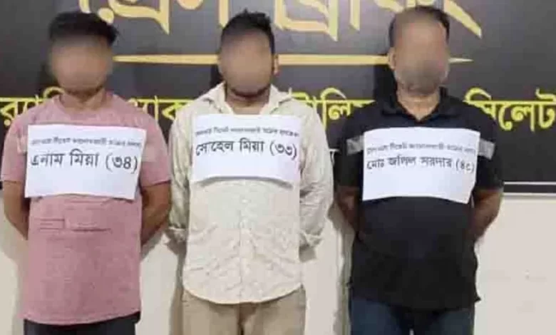 আটককৃতরা হলেন- হবিগঞ্জের শায়েস্তাগঞ্জের দক্ষিণ বড়চরের আব্দুল নূরের পুত্র মো. সোহেল মিয়া (৩৩), বানিয়াচংয়ের নোয়াগাঁও গ্রামের মৃত জুনায়েদ মিয়ার পুত্র মো. জলিল সরদার (৪০) এবং শায়েস্তাগঞ্জের দাউদনগরের সাঈদ আলীর পুত্র এনাম মিয়া (৩৪)।