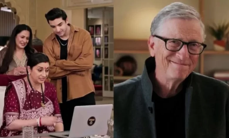বিল গেটস অভিনীত চার মিনিটের দৃশ্যটির শুরুতে দেখা যায়, আমেরিকান উচ্চারণে হিন্দি বলে তুলসীকে সম্ভাষণ জানান বিল গেটস, ‘নমস্তে তুলসীজি।’ সঙ্গে এটাও জিজ্ঞেস করেন, ‘ঠিক বলেছি তো?’ তুলসী হাসিমুখে জবাব দেন, ‘হ্যাঁ, একদম!’