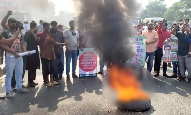 গাজীপুরে টায়ার জ্বালিয়ে বিএনপির নেতাকর্মীদের বিক্ষোভ, যান চলাচল বন্ধ