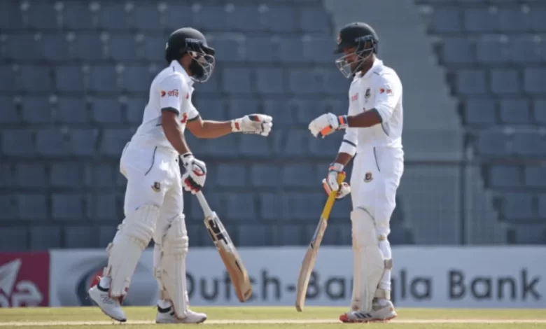 প্রথম সেশনেই দলীয় শতক পার করে ফেলে বাংলাদেশ। ২০.৪ ওভারে আসে শতরান, যেখানে শুরু থেকেই আগ্রাসী ছিলেন সাদমান। বাঁহাতি এই ওপেনার মাত্র ৪৯ বলে তার সপ্তম টেস্ট ফিফটি তুলে নেন। অপরপ্রান্তে জয় খানিক ধীরস্থির ব্যাট করে ৭২ বলে পঞ্চম ফিফটি পূর্ণ করেন।