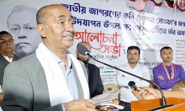 শুক্রবার (১৪ নভেম্বর) বিকেল ৪টায় ঝিনাইদহের শৈলকূপা উপজেলার মনোহরপুর গ্রামে জাতীয় জাগরণের কবি গোলাম মোস্তফার জন্ম ও মৃত্যুদিবস উপলক্ষে আয়োজিত আলোচনা সভা ও সাংস্কৃতিক অনুষ্ঠানে প্রধান অতিথির বক্তব্যে এসব কথা বলেন অ্যাটর্নি জেনারেল। কবির পৈতৃক ভিটায় এই অনুষ্ঠান অনুষ্ঠিত হয়।