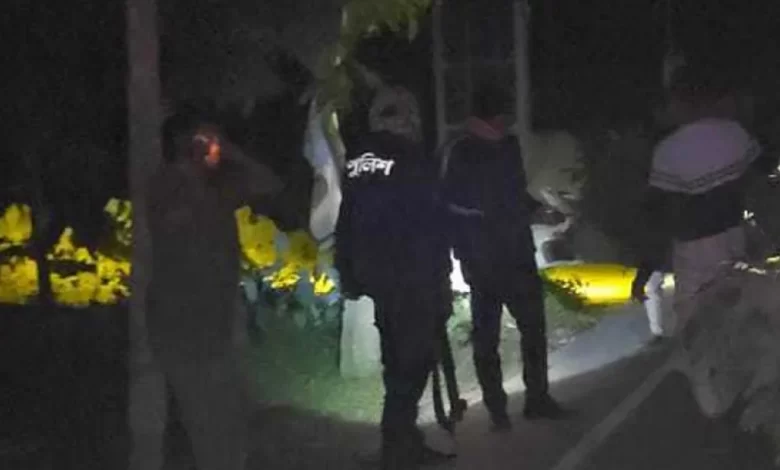 স্থানীয়রা জানান, মোটরসাইকেলে করে কয়েকজন জয়বাংলা স্লোগান দিয়ে শ্রীরামদী এলাকায় আসে। তারা সড়কের পাশে থাকা একটি লিচু গাছ কেটে সড়ক অবরোধ করে ফেলে। এতে যানবাহন চলাচল বন্ধ হয়ে যায়।