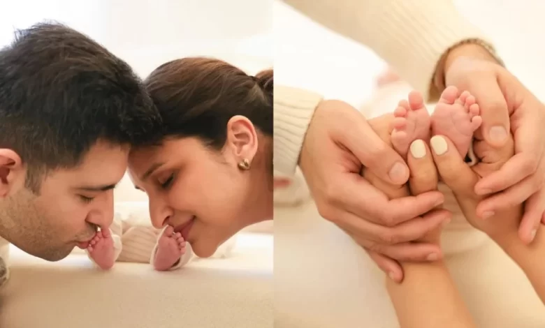 পরিণীতির শেয়ার করা ছবিতে দেখা যায়, ছোট্ট নীরের মুখ জনসমক্ষে না এনে শুধু তার দুটি ছোট্ট পা দেখানো হয়েছে। এক ছবিতে পরম স্নেহে সেই পায়ে মা-বাবা চুমু এঁকে দিচ্ছেন, অন্য ছবিতে তাকে দু’হাত দিয়ে আগলে রেখেছেন। সন্তানের প্রতি তাদের অকৃত্রিম ভালোবাসার প্রকাশ ঘটেছে এই ছবিতে।