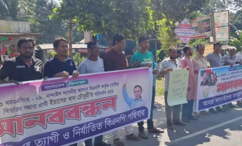 নান্দাইলে বিএনপি প্রার্থীর মনোনয়ন বাতিলের দাবি অব্যাহত
