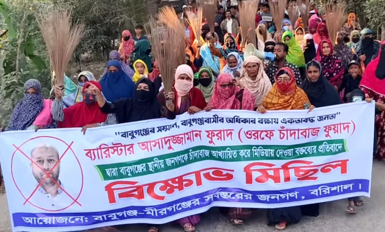 অনলাইন ডেস্ক: বরিশালের বাবুগঞ্জে স্থানীয় জনগণের ওপর ‘চাঁদাবাজ’ মন্তব্য করার প্রতিবাদে আমার বাংলাদেশ (এবি) পার্টির সাধারণ সম্পাদক আসাদুজ্জামান ফুয়াদের বিরুদ্ধে ঝাড়ু হাতে বিক্ষোভ মিছিল অনুষ্ঠিত হয়েছে। গতকাল বুধবার বিকেলে ‘বাবুগঞ্জ-মীরগঞ্জের সর্বস্তরের জনগণ’ ব্যানারে এ কর্মসূচি হয়।