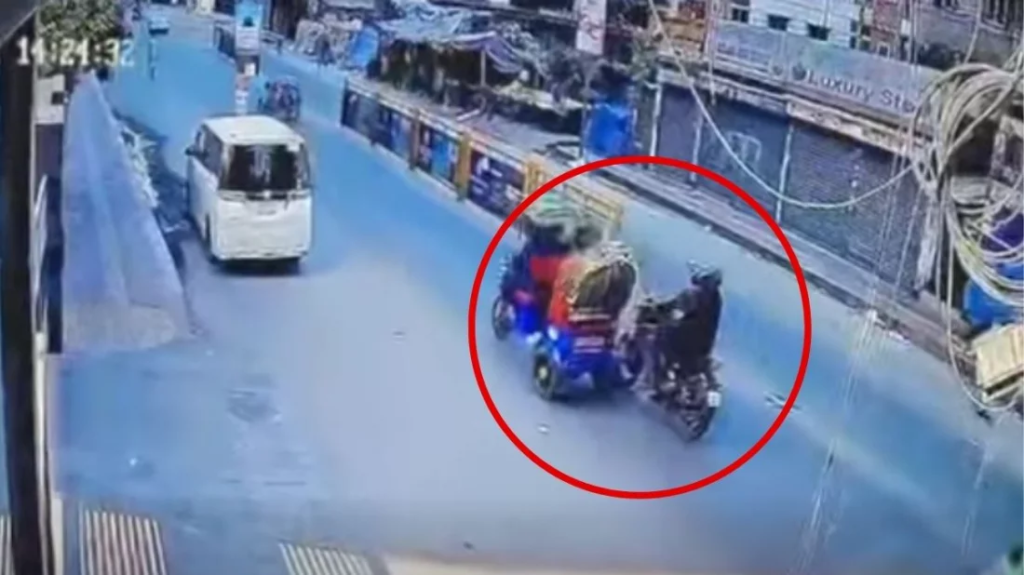 ওসমান হাদিকে মোটরসাইকেল থেকে গুলি করেন দুর্বৃত্তরা। ছবি: সিসিটিভি ফুটেজ