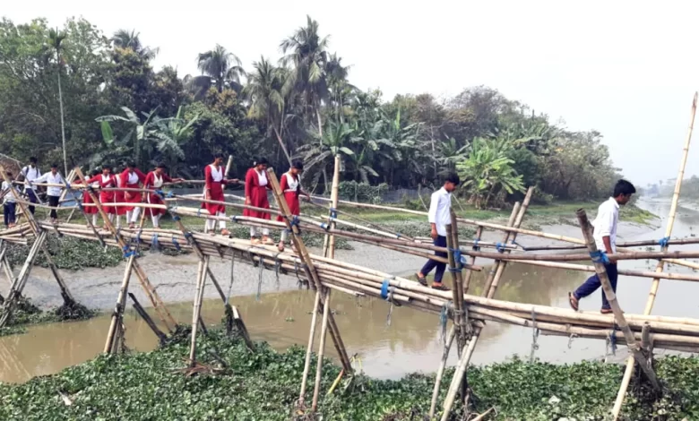 অনলাইন ডেস্ক: চিতলমারী উপজেলা ও হালিশহর-সংলগ্ন রায়গ্রাম এলাকায় মরা চিত্রা নদীর ওপর নির্মিত একটি ঝুঁকিপূর্ণ বাঁশের সাঁকো দিয়ে প্রতিদিন স্কুল-কলেজগামী শিক্ষার্থীসহ শত শত মানুষ জীবনের ঝুঁকি নিয়ে পারাপার হচ্ছে।