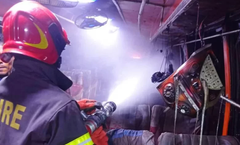 চাঁদপুরে বাসস্ট্যান্ডে দাঁড়িয়ে থাকা তিন বাসে আগুন