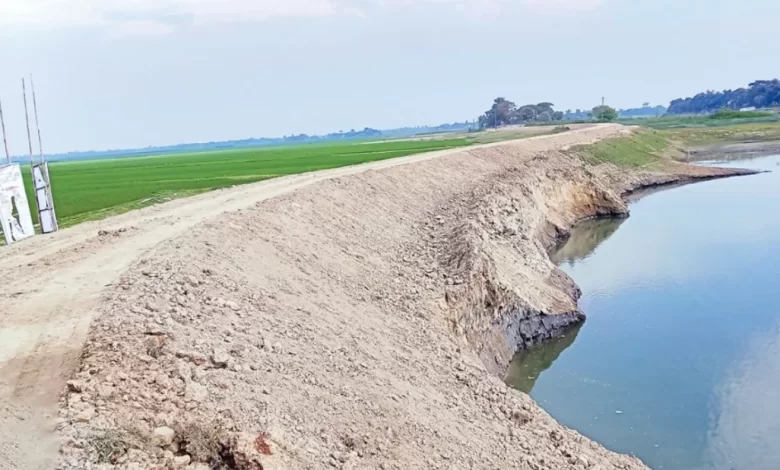 হাওর রক্ষা বাঁধে ফাটল, কৃষকরা উদ্বিগ্ন