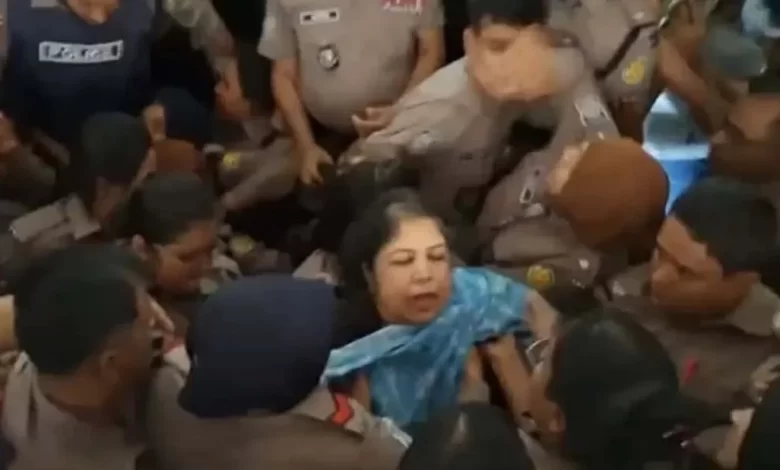 অনলাইন ডেস্ক: ঢাকার আদালতে হাজতখানায় নেওয়ার সময় ভিড়ের মধ্যে পড়ে গিয়ে ব্যথায় চিৎকার করতে দেখা গেছে সাবেক স্পিকার শিরীন শারমিন চৌধুরীকে। এ সময় পুলিশ সদস্যরা তাকে সামলে নেওয়ার চেষ্টা করেন।