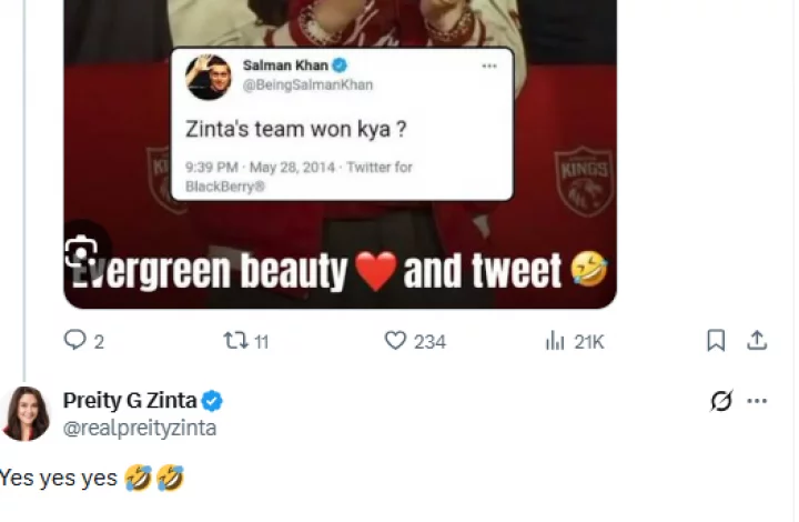 এনডিটিভির প্রতিবেদন অনযায়ী, সম্প্রতি সালমানের ১২ বছরের পুরনো একটি প্রশ্নে প্রীতির ‘হ্যাঁ’ উত্তর বিনোদন জগতের পুরনো এক মজার স্মৃতি মনে করিয়ে দেওয়ায় নতুন করে চর্চা তৈরি করেছে।
