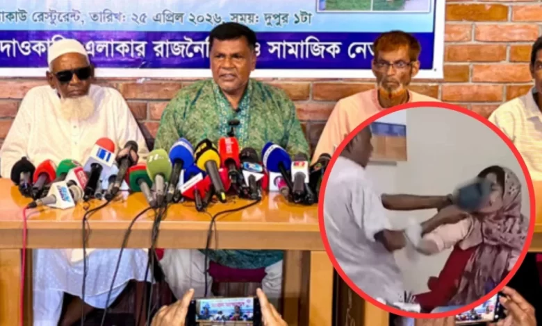 সংবাদ সম্মেলনে কথা বলেন গ্রাম্য মাতব্বর ও স্থানীয় বিএনপির নেতা আব্দুস সামাদ দারোগা। উপস্থিত ছিলেন ওই ঘটনায় বহিষ্কৃত ইউনিয়ন বিএনপির সহ-সভাপতি আকবর আলীসহ ইউনিয়ন কৃষকদলের সভাপতি জয়নাল আবেদীন, ওয়ার্ড বিএনপির সভাপতি ইউজদার আলী ও সাবেক সভাপতি আফাজ উদ্দিন।