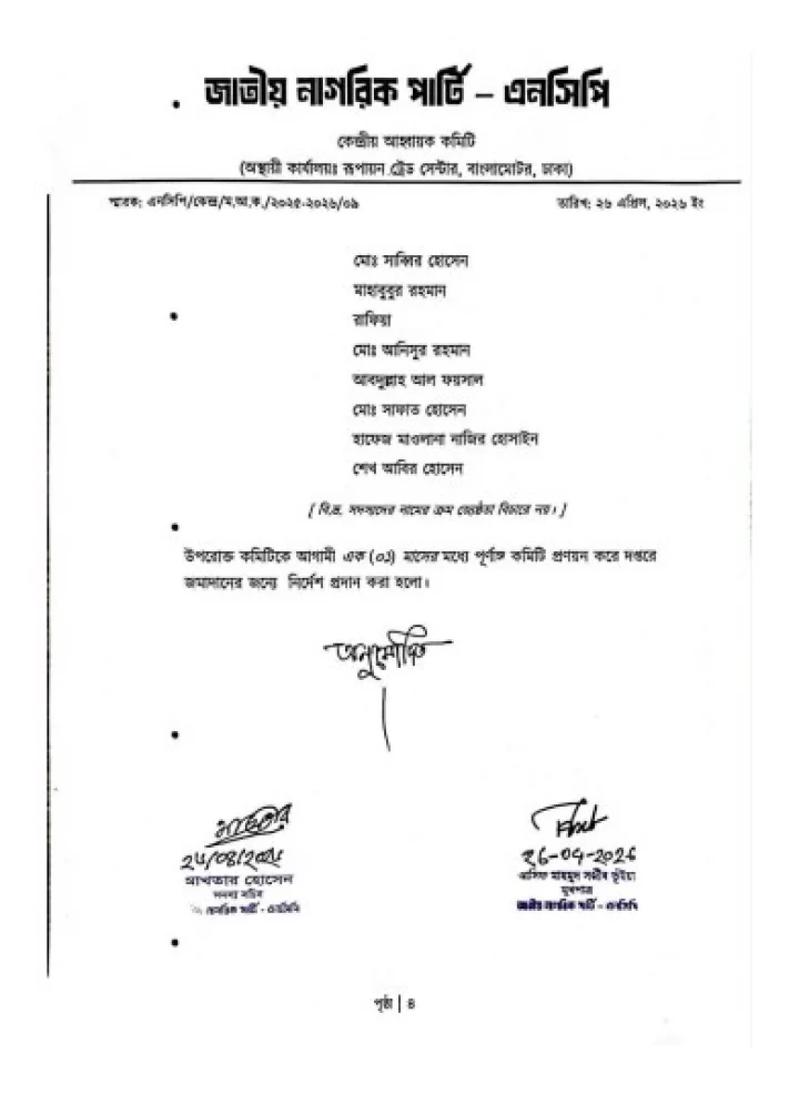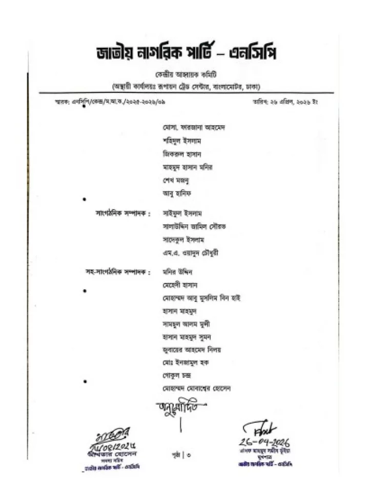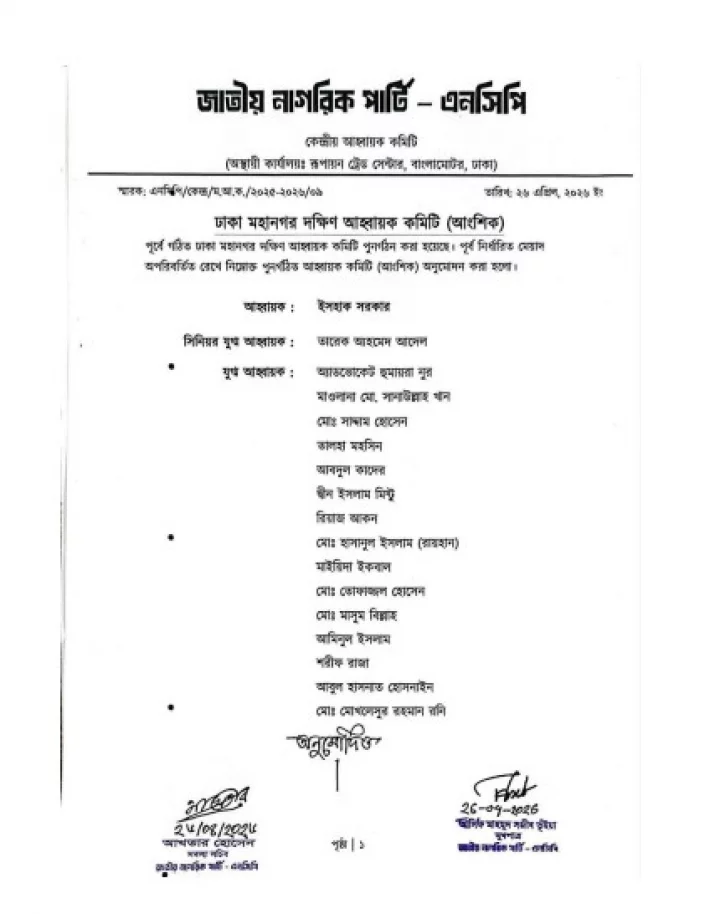 গতকাল রোববার (২৬ এপ্রিল) দলের সদস্যসচিব আখতার হোসেন ও মুখপাত্র আসিফ মাহমুদ সজীব ভুঁইয়ার সই করা এক বিজ্ঞপ্তিতে এ কমিটির ঘোষণা দেওয়া হয়।